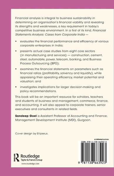 Financial analysis is integral to business sustainability in determining an organisation's financial viability and revealing its strengths and weaknesses, a key requirement in today's competitive business environment. In a first of its kind, Financial Statements Analysis: Cases from Corporate India: evaluates the financial performance and efficiency of various corporate enterprises in India; presents actual case studies from eight core sectors (in manufacturing and services) - construction, cement, steel, automobile, power, telecom, banking, and Business Process Outsourcing (BPO); examines the financial statements on parameters such as financial ratios (profitability, solvency, and liquidity), while appraising their operating efficiency, market potential and valuation; and investigates their implications for larger decision-making and policy recommendations. It will be an important resource for scholars, teachers and students of business and management, commerce, finance, and accounting. It will also appeal to corporate trainers, senior executives and consultants in related fields.