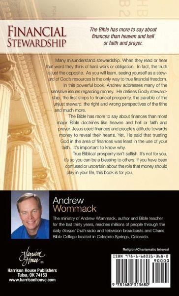 Many misunderstand stewardship. When they read or hear that word they think of hard work or obligation. In fact, the truth is just the opposite. As you will learn, seeing yourself as a steward of God's resources is the only way to true financial freedom. In this powerful book, Andrew addresses many of the sensitive issues regarding money. He defines Godly stewardship, the first steps to financial prosperity, the parable of the unjust steward, the right and wrong perspectives of the tithe and much more. The Bible has more to say about finances than most major Bible doctrines like heaven and hell or faith and prayer. Jesus used finances and people's attitude towards money to reveal their hearts. Yet, He said that trusting God in the area of finances was least in the use of your faith. It's important to know why. True Biblical prosperity isn't selfish. It's not for you; it's so you can be a blessing to others. If you have been confused or uncertain about the role that money should play in your life, this book is for you.