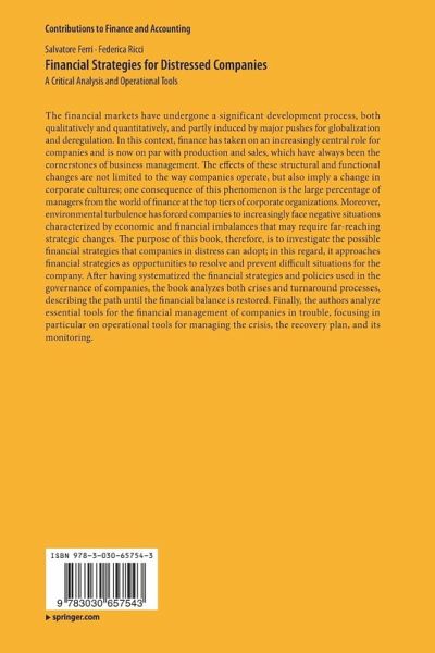 The purpose of this book, therefore, is to investigate the possible financial strategies that companies in distresscan adopt; in this regard, it approaches financial strategies as opportunities to resolve and prevent difficult situations for the company. After having systematized the financial strategies and policies used in the governance of companies, the book analyzes both crises and turnaround processes, describing the path until the financial balance is restored. Finally, the authors analyze essential tools for the financial management of companies in trouble, focusing in particular on operational tools for managing the crisis, the recovery plan, and its monitoring.