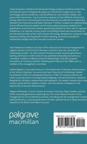 1. Institutional Change and the Design of Financial Systems; Ted Lindblom, Stefan Sjögren and Magnus Willesson 2. The Road to a Viable Euro Zone and the Conditions to Become a More Optimal Currency Region; René W.H. van der Linden 3. The Role of the Federal Reserve as International LOLR During the Crisis; Pierluigi Morelli, Giovanni B. Pittaluga and Elena Seghezza 4. Firm-Based and Institutional-Based Determinants of the Bank Debt Maturity; Eleuterio Vallelado, Paolo Saona and Pablo San Martín 5. The Financing of Italian Firms and the Credit Crunch; Elisabetta Gualandri and Valeria Venturelli 6. Analysis of the Earnings of Italian Asset Management Companies and Their Portfolio Companies in the Field of Private Equity; Elisa Giaretta and Giusy Chesini 7. Does 'Political Bias' Undermine the Korea Investment Corporation?; Andrea Paltrinieri, Flavio Pichler and Stefano Miani 8. Regulating High-Frequency Trading; Giusy Chesini and Elisa Giaretta 9. Islamic and Conventional Exchanges; Josanco Floreani, Andrea Paltrinieri, Maurizio Polato and Flavio Pichler