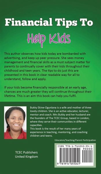 "You've got to tell your money what to do or it will leave." - Dave Ramsey In Financial Tips to Help Kids, author Bukky Ekine-Ogunlana draws on over a decade helping children and their parents and her own experience teaching her own 3 children about money management to offer valuable kids' money advice that will help them to learn the value of saving for college, budgeting for 'wants' like toys and cell phone service and building for financial freedom in the future. In this helpful kids money guide, grade school and middle school aged children learn life-changing advice for money saving tips and kids investing tactics: · How to start a successful child savings plan and start saving for future goals, like college, their first car and other large purchases · Teaching children how ATMs and credit cards work and the costs of using them · Proven methods for building kids spending plans that will work · How to talk to kids about adult issues like debt and monthly payments · How to say 'No' when your child asks for money or unnecessary wants · Kids and money for any age range from early elementary school through middle school · Teaching children the value of work and the reward of receiving payment for completed tasks and jobsPage Up and Order Now.