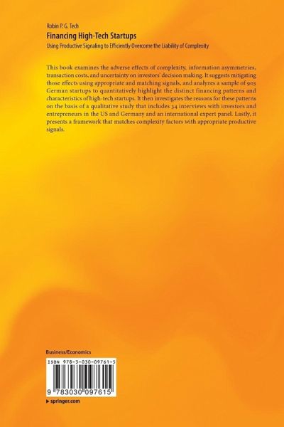 This book examines the adverse effects of complexity, information asymmetries, transaction costs, and uncertainty on investors' decision making. It suggests mitigating those effects using appropriate and matching signals, and analyzes a sample of 903 German startups to quantitatively highlight the distinct financing patterns and characteristics of high-tech startups. It then investigates the reasons for these patterns on the basis of a qualitative study that includes 34 interviews with investors and entrepreneurs in the US and Germany and an international expert panel. Lastly, it presents a framework that matches complexity factors with appropriate productive signals.