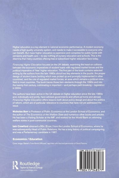 This topical volume tells the story of the UK debate on financing higher education, illustrating a head-on collision between the economic imperatives of student loans and regulated market forces, and the political imperative of 'free' higher education. In telling the story of the partnership of an economist and a political professional, the book offers lessons about both policy design and the politics of reform: of particular relevance to countries which have not yet addressed the issue, including many OECD countries, the more advanced post-communist reforming countries and, increasingly, to middle-income developing countries. No longer the exclusive province of a small intellectual elite, higher education is a key element in national economic performance. A modern economy needs a high-quality university system, and needs to make it accessible to everyone who can benefit, but mass higher education is expensive, and competes for public funds with pensions and health care, to say nothing of nursery education and schools. How to pay for higher education has thus become a central issue, and Barr and Crawford's book expertly covers the debates and issues involved.