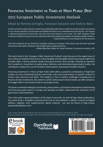 The fourth book in the 'European Public Investment Outlook' series focuses on the urgent issue of how to finance needed investment in critical tangible and intangible infrastructure given high levels of public debt, a thorny problem facing many governments across Europe. Drawing on expertise from academics, researchers at public policy institutes and international governance bodies, the contributors analyse the current situation and prospects and propose feasible solutions. Financing Investment in Times of High Public Debt offers a powerful combination of high-level analysis of cross-continental policies and trends, with close examination of specific contexts in France, Italy, Germany and Spain. The chapters in Part II explore challenges including how to finance climate investments, the extent to which national promotional banks can offer solutions, EU budget reform and recent trends in tax progressivity. This book is essential reading for economists, policymakers, and anyone interested in implementing and financing public policy in Europe and wanting to better understand the intricacies of EU governance and institutions.