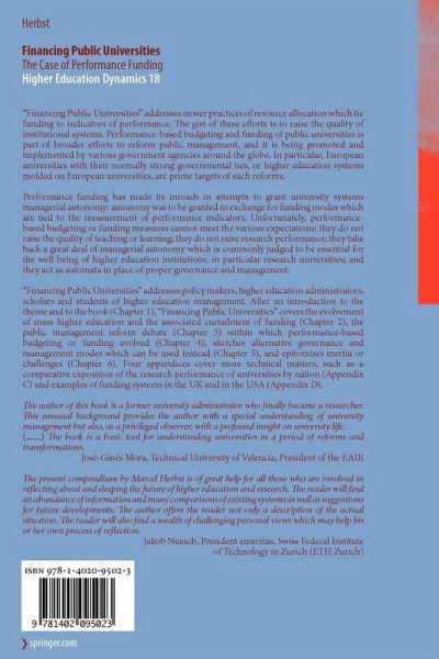 'Marcel Herbst has produced a penetrating and thorough analysis of the current enthusiasm in many countries for employing performance funding as a tool for increasing the accountability and quality of their higher education systems. His work is based on an impressive coverage of the literature on this topic and, particularly important, places the interest in performance funding within the context of the changing and conflicting views of governmental steering and reform of higher education. It is the most insightful and comprehensive examination of this topic available. This book is a "must read" for both governmental policy makers concerned with higher education and college and university leaders.'