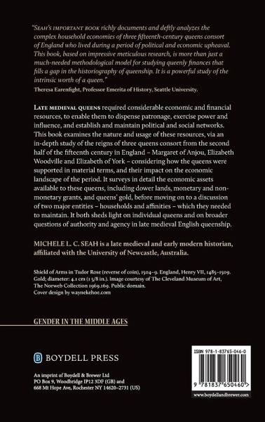 "Seah's important book richly documents and deftly analyzes the complex household economies of three fifteenth-century queens consort of England who lived during a period of political and economic upheaval. This book, based on impressive meticulous research, is more than just a much-needed methodological model for studying queenly finances that fills a gap in the historiography of queenship. It is a powerful study of the intrinsic worth of a queen." Theresa Earenfight, Professor Emerita of History, Seattle University. Late medieval queens required considerable economic and financial resources, to enable them to dispense patronage, exercise power and influence, and establish and maintain political and social networks. This book examines the nature and usage of these resources, via an in-depth study of the reigns of three queens consort from the second half of the fifteenth century in England - Margaret of Anjou, Elizabeth Woodville and Elizabeth of York - considering how the queens were supported in material terms, and their impact on the economic landscape of the period. It surveys in detail the economic assets available to these queens, including dower lands, monetary and non-monetary grants, and queens' gold, before moving on to a discussion of two major entities - households and affinities - which they needed to maintain. It both sheds light on individual queens and on broader questions of authority and agency in late-medieval English queenship.