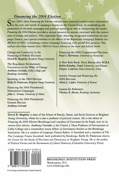 " In the wake of recent legislation, court challenges, and demands for reform, campaign finance remains one of the most important and controversial aspects of the world's oldest democracy. Since 1960, Financing the Election volumes have presented reliable information on the costs and trends of campaign finance in the United States. In establishing the parameters of electoral campaigns and political spending-and interpreting the results-Financing the 2004 Election provides a unique resource for readers and citizens interested in the current state of politics and money in America. F inancing the 2004 Election incorporates many of the features that have made previous editions so important. It employs authoritative analysis of spending by interest groups, political parties, and individual candidates, including data that enables examination of long-term trends. The contributors, all eminent political analysts, also examine spending patterns in different types of elections, including Senate and House races. This timely new volume pays special attention to the effects of the Bipartisan Campaign Reform Act of 2002 (BCRA). It contrasts campaign finance in 2004 with the ways in which national campaigns were financed before BCRA. The authors also draws lessons from 2004 for future reforms at the state and federal levels."