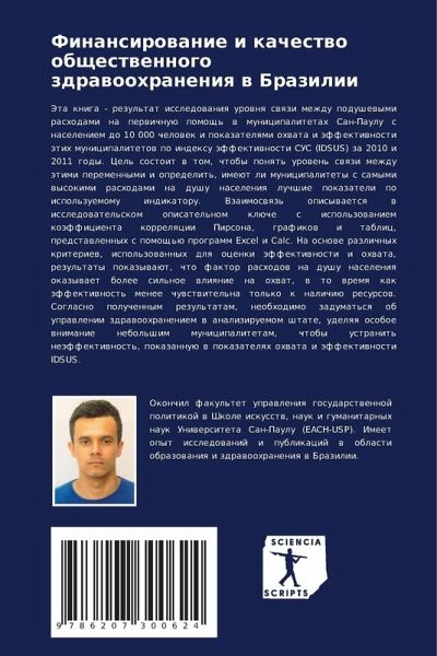 Jeta kniga - rezul'tat issledowaniq urownq swqzi mezhdu podushewymi rashodami na perwichnuü pomosch' w municipalitetah San-Paulu s naseleniem do 10 000 chelowek i pokazatelqmi ohwata i äffektiwnosti ätih municipalitetow po indexu äffektiwnosti SUS (IDSUS) za 2010 i 2011 gody. Cel' sostoit w tom, chtoby ponqt' urowen' swqzi mezhdu ätimi peremennymi i opredelit', imeüt li municipalitety s samymi wysokimi rashodami na dushu naseleniq luchshie pokazateli po ispol'zuemomu indikatoru. Vzaimoswqz' opisywaetsq w issledowatel'skom opisatel'nom klüche s ispol'zowaniem koäfficienta korrelqcii Pirsona, grafikow i tablic, predstawlennyh s pomosch'ü programm Excel i Calc. Na osnowe razlichnyh kriteriew, ispol'zowannyh dlq ocenki äffektiwnosti i ohwata, rezul'taty pokazywaüt, chto faktor rashodow na dushu naseleniq okazywaet bolee sil'noe wliqnie na ohwat, w to wremq kak äffektiwnost' menee chuwstwitel'na tol'ko k nalichiü resursow. Soglasno poluchennym rezul'tatam, neobhodimo zadumat'sq ob uprawlenii zdrawoohraneniem w analiziruemom shtate, udelqq osoboe wnimanie nebol'shim municipalitetam, chtoby ustranit' neäffektiwnost', pokazannuü w pokazatelqh ohwata i äffektiwnosti IDSUS.