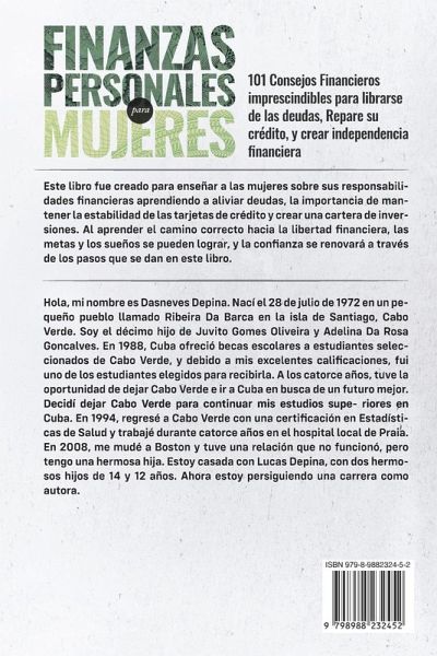 Descripción del libro (Finanzas personales para mujeres) Estamos viendo más mujeres que nunca en la fuerza laboral, pero a pesar de alcanzar posiciones exitosas y bien remuneradas, las mujeres necesitan ayuda para hacer crecer su patrimonio y mantener sus finanzas. La mayoría de las veces, esta lucha no se debe a la incapacidad de controlar y presupuestar el dinero, sino a la falta de educación y recursos disponibles para las mujeres jóvenes o las mujeres en general. Para algunas, la educación financiera puede ser el Everest, pero incluso las montañas más peligrosas pueden conquistarse con la información correcta, paciencia y resistencia. Ya es hora de que las mujeres tomen las riendas de sus finanzas y superen el estigma que rodea a la gestión del dinero porque, al igual que cocinar, la gestión de las finanzas es simplemente una habilidad que todo el mundo necesita tener. Así que, aunque nuestro sistema educativo te haya fallado, este libro no lo hará. Profundiza en la gestión financiera, empezando por las causas profundas, como los miedos financieros y las creencias autolimitantes, y abor dándolas en primer lugar para que las mujeres sepan de dónde proceden esos miedos irracionales y puedan atajar el problema de raíz sin dejar de trabajar para ahorrar dinero. El libro también habla de la inversión del dinero, los préstamos y la elaboración de presupuestos, y te da mucha información y opciones para que puedas elegir lo que mejor se adapte a tu situación personal. Ha llegado el momento de tomar las riendas de tu futuro para que puedas vivir tu mejor vida sin cargas financieras.
