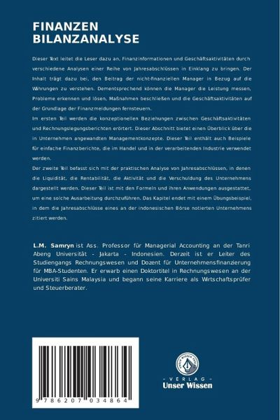 Dieser Text leitet die Leser dazu an, Finanzinformationen und Geschäftsaktivitäten durch verschiedene Analysen einer Reihe von Jahresabschlüssen in Einklang zu bringen. Der Inhalt trägt dazu bei, den Beitrag der nicht-finanziellen Manager in Bezug auf die Währungen zu verstehen. Dementsprechend können die Manager die Leistung messen, Probleme erkennen und lösen, Maßnahmen beschließen und die Geschäftsaktivitäten auf der Grundlage der Finanzmeldungen fernsteuern.Im ersten Teil werden die konzeptionellen Beziehungen zwischen Geschäftsaktivitäten und Rechnungslegungsberichten erörtert. Dieser Abschnitt bietet einen Überblick über die in Unternehmen angewandten Managementkonzepte. Dieser Teil enthält auch Beispiele für einfache Finanzberichte, die im Handel und in der verarbeitenden Industrie verwendet werden.Der zweite Teil befasst sich mit der praktischen Analyse von Jahresabschlüssen, in denen die Liquidität, die Rentabilität, die Aktivität und die Verschuldung des Unternehmens dargestellt werden. Dieser Teil ist mit den Formeln und ihren Anwendungen ausgestattet, um eine solche Ausarbeitung durchzuführen. Das Kapitel endet mit einem Übungsbeispiel, in dem die Jahresabschlüsse eines an der indonesischen Börse notierten Unternehmens zitiert werden.