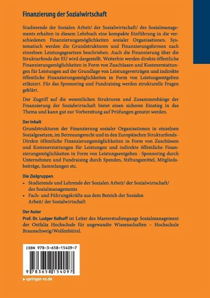 Studierende der Sozialen Arbeit/ der Sozialwirtschaft/ des Sozialmanagements erhalten in diesem Lehrbuch eine kompakte Einführung in die verschiedenen Finanzierungsmöglichkeiten sozialer Organisationen. Systematisch werden die Grundstrukturen und Finanzierungsformen nach einzelnen Leistungsgesetzen beschrieben. Auch die Finanzierung über die Strukturfonds der EU wird dargestellt. Weiterhin werden direkte öffentliche Finanzierungsmöglichkeiten in Form von Zuschussen und Kostenerstattungen fur Leistungen auf der Grundlage von Leistungsverträgen und indirekte öffentliche Finanzierungsmöglichkeiten in Form von Leistungsentgelten erläutert. Für das Sponsoring und Fundraising werden strukturelle Fragen geklärt.