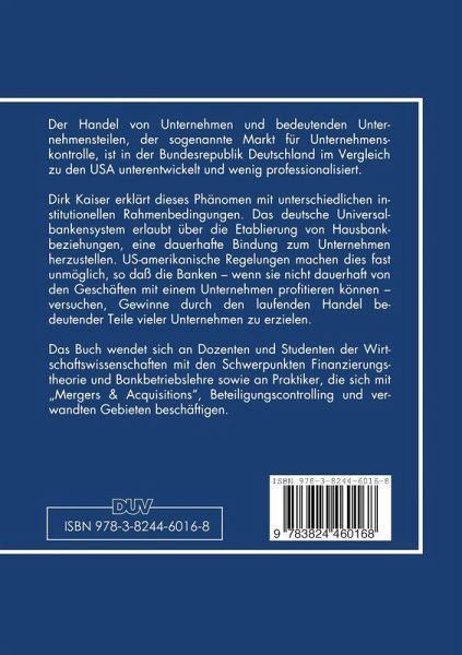 A. Einleitung.- 1 Fragestellung und Empirischer Befund.- 2 Gang der Untersuchung und Themeneingrenzung.- B. Hauptteil.- 3 Finanzierungsverträge in idealtypischer und in realtypischer Betrachtung.- 4 Der Markt für Unternehmenskontrolle in idealtypischer Betrachtung.- 5 Der Markt für Unternehmenskontrolle in realtypischer Betrachtung: Die bundesdeutsche Konzeption.- 6 Der Markt für Unternehmenskontrolle in realtypischer Betrachtung: Die US-amerikanische Konzeption.- 7 Finanzintermediation in idealtypischer Betrachtung.- 8 Finanzintermediation in realtypischer Betrachtung: Das bundesdeutsche Universalbankensystem.- 9 Finanzintermediation in realtypischer Betrachtung: Das US-amerikanische Trennbankensystem.- C. Schlußteil.- 10 Zusammenfassung: Finanzintermediäre am Markt für Unternehmenskontrolle bei unterschiedlichen institutionellen Rahmenbedingungen.- 11 Ausblick auf die Entwicklung des bundesdeutschen Regelungsansatzes für den Markt für Unternehmenskontrolle und für die Finanzintermediation durch Initiativen der Europäischen Gemeinschaften.- Rechtsquellenverzeichnis.- 1 Bundesrepublik Deutschland.- 2 Großbritannien.- 3 Europäische Gemeinschaften.- 4 Vereinigte Staaten.- 4.1 Acts.- 4.2 Codes.