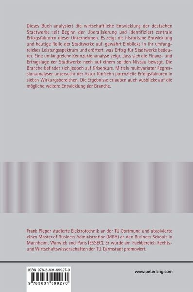 Dieses Buch analysiert die wirtschaftliche Entwicklung der deutschen Stadtwerke seit Beginn der Liberalisierung und identifiziert zentrale Erfolgsfaktoren dieser Unternehmen. Es zeigt die historische Entwicklung und heutige Rolle der Stadtwerke auf, gewährt Einblicke in ihr umfangreiches Leistungsspektrum und erörtert, was Erfolg für Stadtwerke bedeutet. Eine umfangreiche Kennzahlenanalyse zeigt, dass sich die Finanz- und Ertragslage der Stadtwerke noch auf einem soliden Niveau bewegt. Die Branche befindet sich jedoch auf Krisenkurs. Mittels multivariater Regressionsanalysen untersucht der Autor fünfzehn potenzielle Erfolgsfaktoren in sieben Wirkungsbereichen. Die Ergebnisse erlauben auch Ausblicke auf die mögliche weitere Entwicklung der Branche.