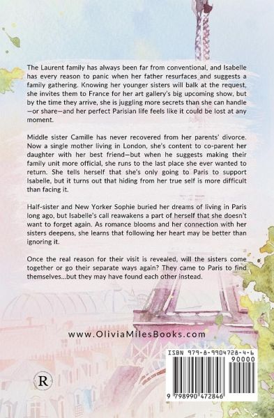Escape to the City of Light in this uplifting and hopeful new novel from USA Today bestselling author Olivia Miles that's perfect for fans of Susan Mallery, Kristan Higgins, and Sarah Morgan. The Laurent family has always been far from conventional, and Isabelle has every reason to panic when her father resurfaces and suggests a family gathering. Knowing her younger sisters will balk at the request, she invites them to France for her art gallery's big upcoming show, but by the time they arrive, she is juggling more secrets than she can handle-or share-and her perfect Parisian life feels like it could be lost at any moment. Middle sister Camille has never recovered from her parents' divorce. Now a single mother living in London, she's content to co-parent her daughter with her best friend-but when he suggests making their family unit more official, she runs to the last place she ever wanted to return. She tells herself that she's only going to Paris to support Isabelle, but it turns out that hiding from her true self is more difficult than facing it. Half-sister and New Yorker Sophie buried her dreams of living in Paris long ago, but Isabelle's call reawakens a part of herself that she doesn't want to forget again. As romance blooms and her connection with her sisters deepens, she learns that following her heart may be better than ignoring it. Once the real reason for their visit is revealed, will the sisters come together or go their separate ways again? They came to Paris to find themselves...but they may have found each other instead.