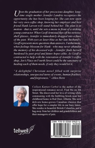 Upon the graduation of her precocious daughter, long-time single mother Jennifer Landrie recognizes the opportunity she has been longing for. She can now open her very own coffee shop, knowing her employer and best friend Hank Larson will stand behind her. The plan is in motion-that is, until she sets a menu in front of a striking young contractor. When Geoff Armistad flips off his tortoise-shell glasses, Jennifer is immediately dragged into echoes of the past. With eyes as laser-blue as her late husband's, Geoff represents more questions than answers. Furthermore, when feelings blossom for Hank-who may never abandon the memory of his deceased wife-Jennifer finds herself burdened by past grief and future hopes alike. As Geoff is contracted to help with the renovation of Jennifer's coffee shop, Jen's Place on Fourth Street could be the sanctuary of healing each of them needs, if only they would let it.