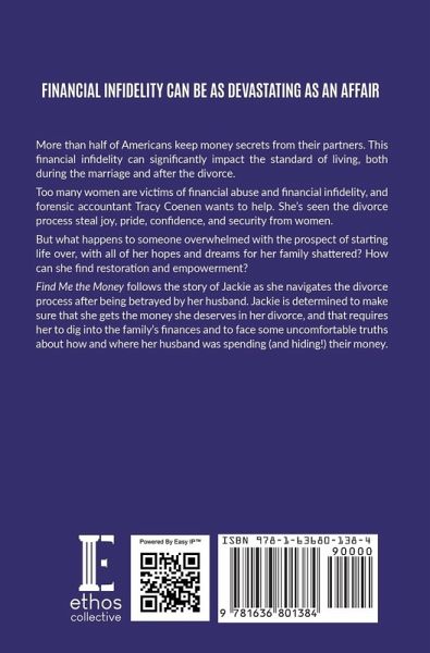Financial Infidelity Can Be As Devastating As an Affair More than half of Americans keep money secrets from their partners. Too many women are victims of financial infidelity, and forensic accountant Tracy Coenen wants to help. She's seen the divorce process steal joy, confidence, and security from women. What happens to someone overwhelmed with starting over, all her hopes and dreams for her family shattered? How can she find restoration and empowerment? Find Me the Money follows the story of Jackie as she navigates her divorce after being betrayed by her husband. Determined to get the money she deserves in her divorce, Jackie digs into their finances and faces the uncomfortable truth about how and where her husband spent (and hid) their money. You'll discover how to: * Detect financial deceit and find hidden money. * Identify red flags of financial fraud. * Follow a simple process to untangle the financial lies. * Come out of your divorce feeling victorious. * Start your new life with courage. Don't be cheated twice. Learn the strategies, then leverage the tools to win every penny of the money you are entitled to in your divorce.