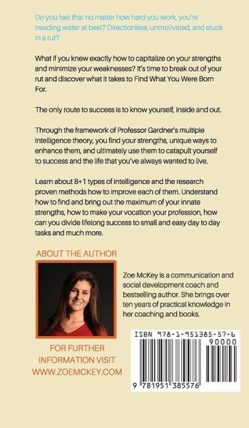 Do you feel that no matter how hard you work, you’re treading water at best? Directionless, unmotivated, and stuck in a rut? What if you knew exactly how to capitalize on your strengths and minimize your weaknesses? It’s time to break out of your rut and discover what it takes to Find What You Were Born For. The only route to success is to know yourself, inside and out. Through the framework of Professor Gardner’s multiple intelligence theory, you find your strengths, unique ways to enhance them, and ultimately use them to catapult yourself to success and the life that you’ve always wanted to live. All my life changes started when I understood that I was making a living from rat race jobs I hated and best case I was mediocre in them. By finding my main intelligence type I started doing something I love and I’m good in. Today I am a bestselling author and interpersonal skills coach and created the life I wanted. Now my goal is to help you create the life you want. I particularly understand what drives success and I also know precisely what's holding you back, and I can help. Finding what you were born for empowers you: - Learn about 8+1 types of intelligence and the research proven methods how to improve each of them - How to find and bring out the maximum of your innate strengths - How to make your vocation your profession - How can you divide lifelong success to small and easy day to day tasks You will also learn: - How to build higher quality of life - How to get out of the 9-5 rat race - How to introduce your passion in your life without the risk of losing your livelihood - How to make the best decisions for short and long term success What improvements will you experience if you follow the advice in this book? - You will live a well-balanced, full life - Wake up every day grateful and excited to see what lies ahead. - Know what – when and how to improve in you for maximum results - Be the role model instead of looking for one