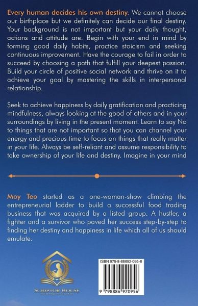 Every human decides his own destiny. We cannot choose our birthplace but we definitely can decide our final destiny. Your background is not important but your daily thought, actions, and attitude are. Begin with your end in mind by forming good daily habits, practicing stoicism, and seeking continuous improvement. Have the courage to fail in order to succeed by choosing a path that fulfills your deepest passion. Build your circle of positive social networks and thrive on them to achieve your goal by mastering the skills in interpersonal relationships. Seek to achieve happiness by daily gratification and practicing mindfulness, always looking at the good of others and in your surroundings by living in the present moment. Learn to say No to things that are not important so that you can channel your energy and precious time to focus on things that really matter in your life. Always be self-reliant and assume responsibility to take ownership of your life and destiny. Imagine in your mind the big vision that others dare not dream of and stand by it till you achieve it. Success and happiness including financial freedom will be within reach if all of the above can be performed.
