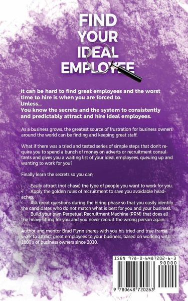 It can be hard to find great employees and the worst time to hire is when you are forced to. Unless... You know the secrets and the system to consistently and predictably attract and hire ideal employees. As a business grows, the greatest source of frustration for business owners around the world can be finding and keeping great staff. What if there was a tried and tested series of simple steps that don't require you to spend a bunch of money on adverts or recruitment consultants and gives you a waiting list of your ideal employees, queuing up and wanting to work for you? Finally learn the secrets so you can; ¿ Easily attract (not chase) the type of people you want to work for you. ¿ Apply the golden rules of recruitment to save you avoidable headaches. ¿ Ask great questions during the hiring phase so that you easily identify the candidates who do not match what is best for you and your business. ¿ Build your own Perpetual Recruitment Machine (PRM) that does all the heavy lifting for you and you never recruit the wrong person again. Author and mentor Brad Flynn shares with you his tried and true framework to attract great employees to your business, based on working with 1000's of business owners since 2010.