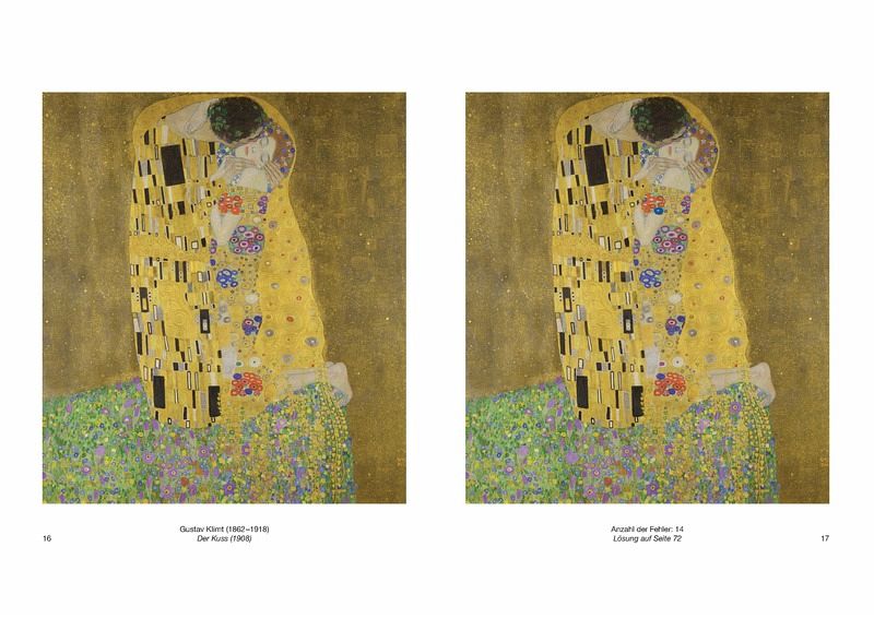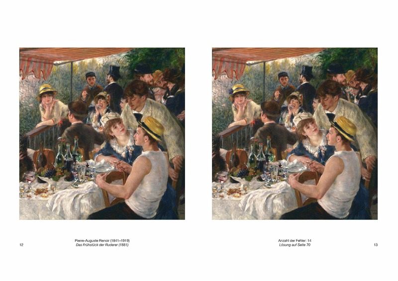 Dieses Buch spricht Rätselfans und Kunstliebhaber gleichermaßen an, denn es zeigt Abbildungen von 30 weltbekannten Gemälden aus verschiedenen Kunstepochen, die einmal im Originaldruck und einmal mit veränderten bzw. fehlenden Bildelementen vorliegen.