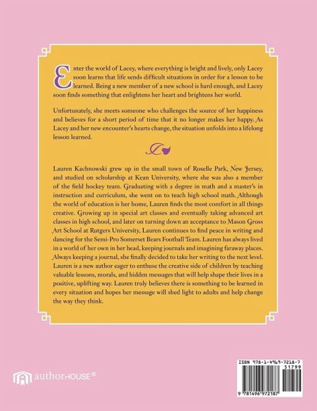 Enter the world of Lacey, where everything is bright and lively, only Lacey soon learns that life sends difficult situations in order for a lesson to be learned. Being a new member of a new school is hard enough, and Lacey soon finds something that enlightens her heart and brightens her world. Unfortunately, she meets someone who challenges the source of her happiness and believes for a short period of time that it no longer makes her happy. As Lacey and her new encounter's hearts change, the situation unfolds into a lifelong lesson learned.