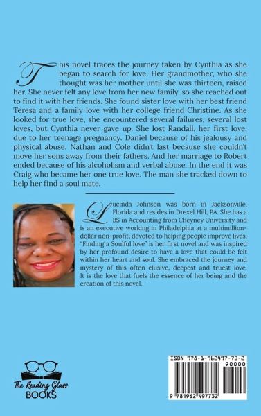 Synopsis: This novel traces the journey taken by Cynthia as she began to search for love. Her grandmother, who she thought was her mother until she was thirteen, raised her. She never felt any love from her new family, so she reached out to find it with her friends. She found sister love with her best friend Teresa and a family love with her college friend Christine. As she looked for true love, she encountered several failures, several lost loves, but Cynthia never gave up. She lost Randall, her first love, due to her teenage pregnancy. Daniel because of his jealousy and physical abuse. Nathan and Cole didn't last because she couldn't move her sons away from their fathers. And her marriage to Robert ended because of his alcoholism and verbal abuse. In the end, it was Craig who became her one true love. The man she tracked down to help her find a soul mate. Autobiography: Lucinda Johnson was born in Jacksonville, Florida and resides in Drexel Hill, PA. She has a BS in Accounting from Cheyney University and is an executive working in Philadelphia at a multimillion dollar non-profit, devoted to helping people improve lives. "Finding A Soulful Love" is her first novel and was inspired by her profound desire to have a love that could be felt within her heart and soul. She embraced the journey and mystery of this often elusive, deepest and truest love. It is the love that fuels the essence of her being and the creation of this novel.