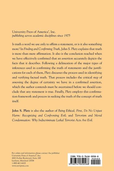 In this book, Pletz explains that truth is more than mere affirmation. It also is the conclusion reached when we have effectively confirmed that an assertion accurately depicts the facts that it describes. He also discusses the process used in identifying and verifying factual truth.