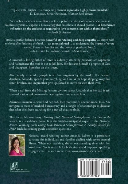National award-winning author Amanda LaPera is a passionate advocate for individuals and families dealing with severe mental illness. She served on the Board of Directors for the National Alliance for Mental Illness, Orange County, California Affiliate. When she is not teaching, she enjoys spending time with her loved ones. Amanda is available for both virtual and in-person speaking engagements. To learn more, visit: www.amandalapera.com