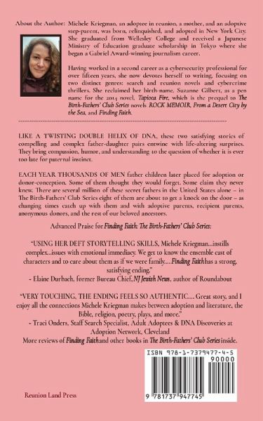 ----------------------------------------------------------------------------------------------- LIKE A TWISTING DOUBLE HELIX OF DNA, these two satisfying stories of compelling and complex father-daughter pairs entwine with life-altering surprises. They bring compassion, humor, and understanding to the question of whether it is ever too late for paternal instinct. EACH YEAR THOUSANDS OF MEN father children later placed for adoption or donor-conception. Some of them thought they would forget. Some claim they never knew. There are several million of these secret fathers in the United States alone - in The Birth-Fathers' Club Series eight of them are about to get a knock on the door - as changing times catch up with them and with adoptive parents, recipient parents, anonymous donors, and the rest of our beloved ancestors.