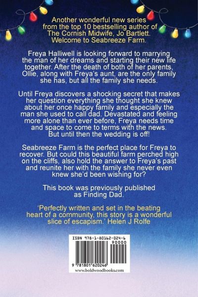 Pre-order the next instalment in Jo Bartlett's wonderful Seabreeze Farm series! Another wonderful new series from the top 10 bestselling author of The Cornish Midwife, Jo Bartlett. Welcome to Seabreeze Farm. Freya Halliwell is looking forward to marrying the man of her dreams and starting their new life together. After the death of both of her parents, Ollie, along with Freya's aunt, are the only family she has, but all the family she needs. Until Freya discovers a shocking secret that makes her question everything she thought she knew about her once happy family and especially the man she used to call dad. Devastated and feeling more alone than ever before, Freya needs time and space to come to terms with the news. But until then the wedding is off! Seabreeze Farm is the perfect place for Freya to recover. But could this beautiful farm perched high on the cliffs, also hold the answer to Freya's past and reunite her with the family she never even knew she'd been wishing for? This book was previously published as Finding Dad. Praise for Jo Bartlett: 'I love second chance stories. I love returning home stories. So a book combining both is an absolute winner for me. The Cornish Midwife is simply gorgeous. Stunning setting, wonderful characters, and oozing with warmth. A triumph from Jo Bartlett.' Jessica Redland 'Perfectly written and set in the beating heart of a community, this story is a wonderful slice of Cornish escapism.' Helen J Rolfe.