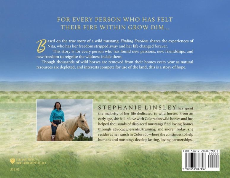 Based on the true story of a wild mustang, Finding Freedom shares the experiences of Nita, who has her freedom stripped away and her life changed forever. This story is for every person who has found new passions, new friendships, and new freedom to reignite the wildness inside them. Though thousands of wild horses are removed from their homes every year as natural resources are depleted, and interests compete for use of the land, this is a story of hope.