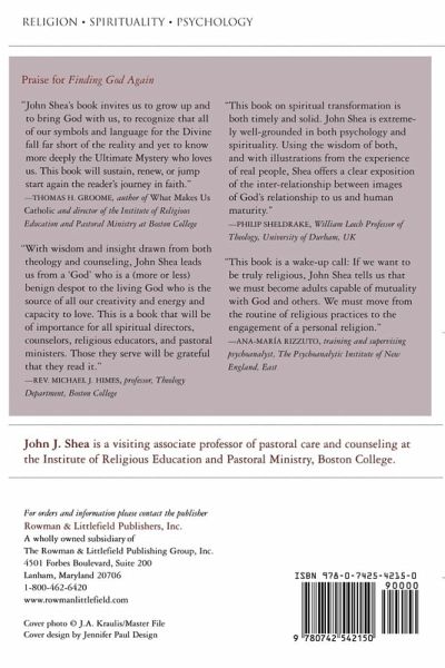 Growing out of two decades of teaching and practice, Finding God Again: Spirituality for Adults addresses, in an experiential and pastoral way, the need to re-envision God as we grow from an adolescent to adult spirituality. Shea, a renowned pastoral counselor and teacher, shows how we can lose touch with religion, spirituality, and a belief in God because of times when our image of God is too narrow, unreal, or inadequate to make sense of our experience. Real life stories illustrate Shea's life-changing challenge to leave behind the Superego God of childhood in favor of a Living God we can relate to as adults.
