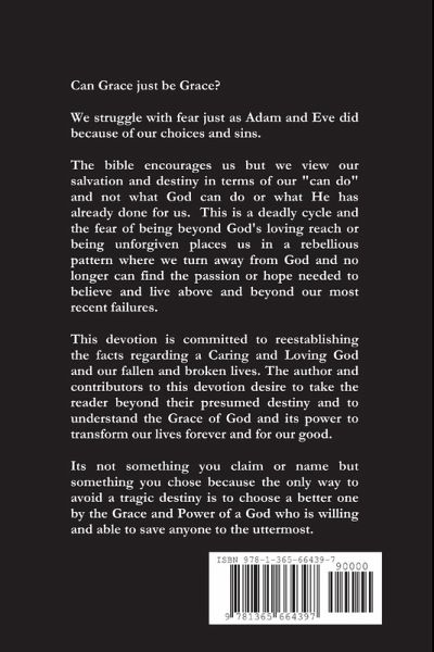 This a devotion themed from the authors first book Beyond Destiny. It has been structured as a devotion allowing the reader to meditate on smaller portions and themes that are found in its pages for daily or timely inspiration. Too often in our struggle to know God and comprehend his Infinite love it seems so unimaginable that we begin to discount it and we stray and lose our way and our relationship with God. This is a burden and conflict for a believer or a seekers who come face to face with their own persistent imperfections, finding it hard to believe God can forgive or love them as they have told others. We struggle to apply the faith we encourage others to accept. We often say "come as your are" to unbelievers because it is what we hope for ourselves but think it to grand for us. Will God love you and welcome you back as he does the sinners in the bible? Why would God forgive you? How does Grace work for you or can it? Real questions needing real answers.