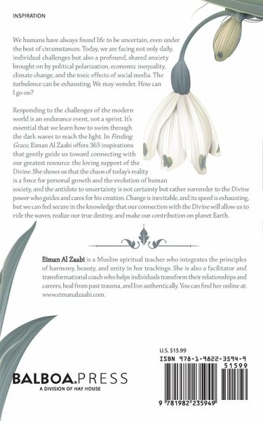 We humans have always found life to be uncertain, even under the best of circumstances. Today, we are facing not only daily, individual challenges but also a profound, shared anxiety brought on by political polarization, economic inequality, climate change, and the toxic effects of social media. The turbulence can be exhausting. We may wonder, How can I go on? Responding to the challenges of the modern world is an endurance event, not a sprint. It's essential that we learn how to swim through the dark waves to reach the light. In Finding Grace, Eiman Al Zaabi offers 365 inspirations that gently guide us toward connecting with our greatest resource: the loving support of the Divine. She shows us that the chaos of today's reality is a force for personal growth and the evolution of human society, and the antidote to uncertainty is not certainty but rather surrender to the Divine power who guides and cares for his creation. Change is inevitable, and its speed is exhausting, but we can feel secure in the knowledge that our connection with the Divine will allow us to ride the waves, realize our true destiny, and make our contribution on planet Earth.