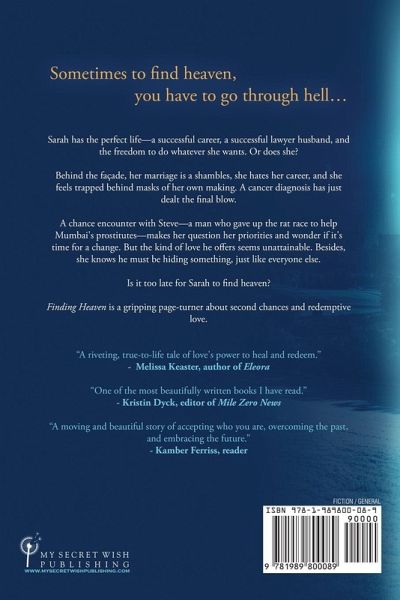 Sometimes to find heaven, you have to go through hell... Sarah has the perfect life-a successful career, a successful lawyer husband, and the freedom to do whatever she wants. Or does she? Behind the façade, her marriage is a shambles, she hates her career, and she feels trapped behind masks of her own making. A cancer diagnosis has just dealt the final blow. A chance encounter with Steve-a man who gave up the rat race to help Mumbai's prostitutes-makes her question her priorities and wonder if it's time for a change. But the kind of love he offers seems unattainable. Besides, she knows he must be hiding something, just like everyone else. Is it too late for Sarah to find heaven? Buy this gripping page-turner about second chances and redemptive love and start your journey today!