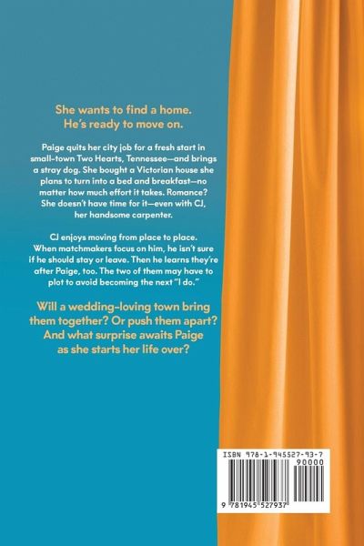 She wants to find a home. He's ready to move on. Paige quits her city job for a fresh start in small-town Two Hearts, Tennessee-and brings a stray dog. She bought a Victorian house she plans to turn into a bed and breakfast-no matter how much effort it takes. Romance? She doesn't have time for it-even with CJ, her handsome carpenter. CJ enjoys moving from place to place. When matchmakers focus on him, he isn't sure if he should stay or leave. Then he learns they're after Paige, too. The two of them may have to plot to avoid becoming the next "I do." Will a wedding-loving town bring them together? Or push them apart? And what surprise awaits Paige as she starts her life over? Author's Note: A heroine who's ready to settle down. A hero who doesn't want to. A charming small town. Laughter and fun. Sweet and clean romance. Happily ever after.
