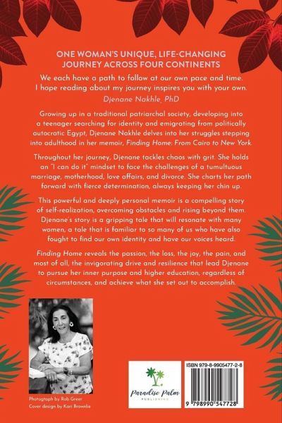 ONE WOMAN'S UNIQUE, LIFE-CHANGING JOURNEY ACROSS FOUR CONTINENTS We each have a path to follow at our own pace and time. I hope reading about my journey inspires you with your own. Djenane Nakhle, PhD Growing up in a traditional patriarchal society, developing into a teenager searching for identity and emigrating from politically autocratic Egypt, Djenane Nakhle delves into her struggles stepping into adulthood in her memoir, Finding Home: From Cairo to New York. Throughout her journey, Djenane tackles chaos with grit. She holds an "I can do it" mindset to face the challenges of a tumultuous marriage, motherhood, love affairs, and divorce. She charts her path forward with fierce determination, always keeping her chin up. This powerful and deeply personal memoir is a compelling story of self-realization, overcoming obstacles and rising beyond them. Djenane's story is a gripping tale that will resonate with many women, a tale that is familiar to so many of us who have also fought to find our own identity and have our voices heard. Finding Home reveals the passion, the loss, the joy, the pain, and most of all, the invigorating drive and resilience that lead Djenane to pursue her inner purpose and higher education, regardless of circumstances, and achieve what she set out to accomplish.