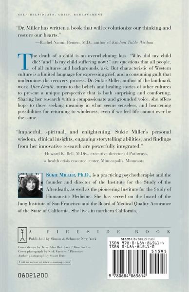 The death of a child is an overwhelming loss. "Why did my child die?" and "Is my child suffering now?" are questions that all people, of all cultures and backgrounds, ask. But characteristic of Western culture is a limited language for expressing grief, and a consuming guilt that undermines the recovery process. Dr. Sukie Miller, author of the landmark work "After Death," turns to the beliefs and healing stories of other cultures to present a unique perspective that is both surprising and comforting. Sharing her research with a compassionate and grounded voice, she offers hope to those seeking meaning in what seems senseless, and heartening possibilities for returning to wholeness, even if we feel life cannot ever be the same.