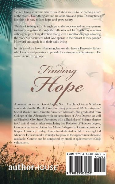 We are living in a time where our Nation seems to be coming apart at the seams. Everything around us looks dim and grim. During times like this it is easy to lose hope and grow weary. This book is designed to bring hope to the hopeless and encouragement to those navigating through the difficulties of life. Each day contains a thought- provoking devotion along with a meditation page allowing the reader to document what God speaks to their heart as they ponder His word and apply it to their daily living. In this world we have tribulation, but we also have a Heavenly Father who loves us and promises to provide for us in every circumstance-He alone is our living hope.