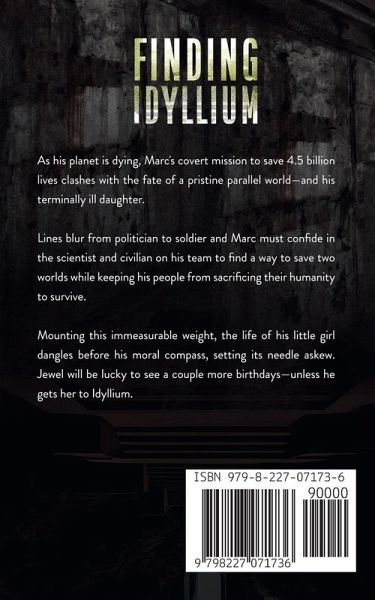 Beyond the 4.5 billion Marc must save, Idyllium is his daughter's only hope. Earth is dying. His daughter is dying. Marc must make her end justify his means. A covert mission to save Earth's billions clashes with the fate of a pristine parallel world. From politician to soldier to civilian, ethical lines blur. Loyalties are challenged. The order to assassinate Idyllium's key political leader forces Marc to take desperate turns, dividing members of his team. ¿¿¿¿¿¿¿Meanwhile, the life of his little girl dangles before his moral compass, setting its needle askew. Jewel will be lucky to see a couple more birthdays-unless Marc can get her to Idyllium in time. Will a "mission accomplished" mean victory or defeat? The answer is waiting for you on Idyllium...