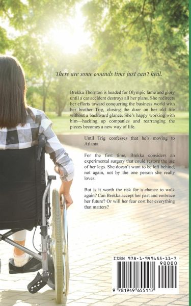 There are some wounds time just can't heal. Brekka Thornton is headed for Olympic fame and glory until a car accident destroys all her plans. She redirects her efforts toward conquering the business world with her brother Trig, closing the door on her old life without a backward glance. She's happy working with him-hacking up companies and rearranging the pieces becomes a new way of life. Until Trig confesses that he's moving to Atlanta. For the first time, Brekka considers an experimental surgery that could restore the use of her legs. She doesn't want to be left behind, not again, not by the one person she really loves. But is it worth the risk for a chance to walk again? Can Brekka accept her past and embrace her future? Or will her fear cost her everything that matters?