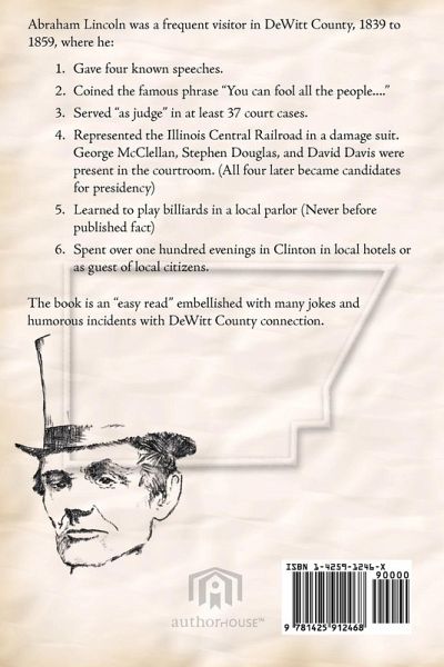 Abraham Lincoln was a frequent visitor in DeWitt County, 1839 to 1859, where he: 1. Gave four known speeches. 2. Coined the famous phrase "You can fool all the people...." 3. Served "as judge" in at least 37 court cases. 4. Represented the Illinois Central Railroad in a damage suit. GeorgeMcClellan, Stephen Douglas, and David Davis were present in thecourtroom. (All four later became candidates for presidency) 5. Learned to play billiards in a local parlor (Never before published fact) 6. Spent over one hundred evenings in Clinton in local hotels or as guest of local citizens. The book is an "easy read" embellished with many jokes and humorous incidents with DeWitt County connection.