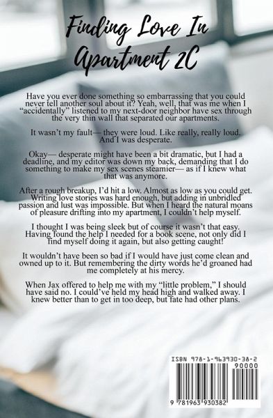 Have you ever done something so embarrassing that you could never tell another soul about it? Yeah, well, that was me when I "accidentally" listened to my next-door neighbor have sex through the very thin wall that separated our apartments. It wasn't my fault- they were loud. Like really, really loud. And I was desperate. Okay- desperate might have been a bit dramatic, but I had a deadline, and my editor was down my back, demanding that I do something to make my sex scenes steamier- as if I knew what that was anymore. After a rough breakup, I'd hit a low. Almost as low as you could get. Writing love stories was hard enough, but adding in unbridled passion and lust was impossible. But when I heard the natural moans of pleasure drifting into my apartment, I couldn't help myself. I thought I was being sleek but of course it wasn't that easy. Having found the help I needed for a book scene, not only did I find myself doing it again, but also getting caught! It wouldn't have been so bad if I would have just come clean and owned up to it. But remembering the dirty words he'd groaned had me completely at his mercy. When Jax offered to help me with my "little problem," I should have said no. I could've held my head high and walked away. I knew better than to get in too deep, but fate had other plans.