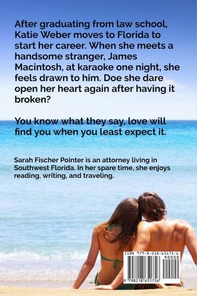 Katie Weber is laser focused on her career and her family. At twenty- five, she moves from Dixon, Illinois to the sandy shores of Southwest Florida with her retirement age parents and passes the Florida Bar Exam on her first try. After she finds a job at a small personal injury law firm in downtown Fort Myers, Katie concentrates on doing well at her job and providing for herself and her family. She manages to carve out a little bit of a social life for herself, making a few friends at work and at Friday night karaoke. That's where she bumps into a handsome stranger at the bar one night. James Macintosh is tall and fair-haired, with a heart of gold. He's ten years older than Katie but he turns out to be the perfect combination of outgoing and nerdy to match Katie's quieter personality. An IT professional in Fort Myers, James is intelligent, sweet, and family oriented. Does Katie dare open her heart to the possibility of love again after being dumped in college? You know what they say, love will find you when you least expect it.