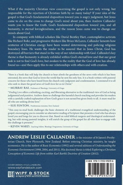 What if the majority Christian view concerning the gospel is not only wrong, but responsible for the rejection of Christian faith by so many today? If your idea of the gospel is that God's fundamental disposition toward you is angry judgment, but Jesus came to die on the cross to change God's mind about you, then Andrew Callander wants you to know the truth. God's fundamental disposition toward you, and all humanity, is eternal lovingkindness, and the reason Jesus came was to change our minds about God. In company with biblical scholars like David Bentley Hart, contemplative activists like Richard Rohr, and progressive thinkers like Brian McLaren, Callander laments how centuries of Christian energy have been wasted determining and policing religious boundary lines. He wants the reader to be assured that in Jesus Christ, God has destroyed all barriers that stand in the way of our relationship with God. Callander's key theme is that humanity is already enfolded within God's eternal love and that our great task is not to find God's love, but awaken to the reality that the God of love has already found us--and then apply this to our relationships with others and with creation.