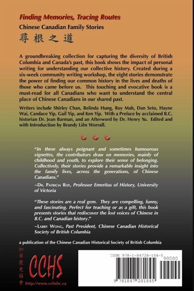 Paperback edition. A groundbreaking collection for capturing the diversity of British Columbia and Canada's past, this book shows the impact of personal writing for understanding our collective history. Created during a six-week community writing workshop, the eight stories demonstrate the power of finding our common history in the lives and deaths of those who came before us. This touching and evocative book is a must-read for all Canadians who want to understand the central place of Chinese Canadians in our shared past. Writers include Shirley Chan, Belinda Hung, Roy Mah, Dan Seto, Hayne Wai, Candace Yip, Gail Yip, and Ken Yip. With a Preface by acclaimed B.C. historian Dr. Jean Barman, and an Afterword by Dr. Henry Yu. Edited and with Introduction by Brandy Liên Worrall.