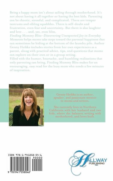 Being a happy mom isn't about sailing through motherhood. It's not about having it all together or having the best kids. Parenting can be chaotic, stressful, and complicated. There are temper tantrums and sibling squabbles. There is self-doubt and frustration, even fear and uncertainty. But there is also laughter and love . . . and, yes, even bliss. Finding Mommy Bliss-Discovering Unexpected Joy in Everyday Moments helps moms take steps toward the parental happiness that can sometimes be hiding at the bottom of the laundry pile. Author Genny Heikka includes stories from her own experiences as a parent, along with practical advice, tips, and questions that moms can explore on their own or in a group setting. Filled with the humor, heartache, and humbling realizations that only parenting can bring, Finding Mommy Bliss makes for an encouraging, easy read for the busy mom who needs a few minutes of inspiration.