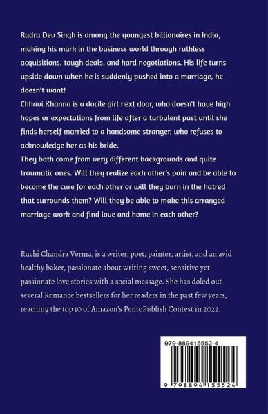 Rudra Dev Singh is among the youngest billionaires in India, making his mark in the business world through ruthless acquisitions, tough deals, and hard negotiations. His life turns upside down when he is suddenly pushed into a marriage, he doesn't want! Chhavi Khanna is a docile girl next door, who doesn't have high hopes or expectations from life after a turbulent past until she finds herself married to a handsome stranger, who refuses to acknowledge her as his bride. They both come from very different backgrounds and quite traumatic ones. Will they realize each other's pain and be able to become the cure for each other or will they burn in the hatred that surrounds them? Will they be able to make this arranged marriage work and find love and home in each other?
