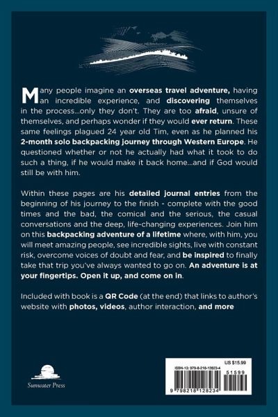 Many people imagine an overseas travel adventure, having an incredible experience, and discovering themselves in the process...only they don't. They are too afraid, unsure of themselves, and perhaps wonder if they would ever return. These same feelings plagued 24 year old Tim, even as he planned his 2-month solo backpacking journey through Western Europe. He questioned whether or not he actually had what it took to do such a thing, if he would make it back home...and if God would still be with him. Within these pages are his detailed journal entries from the beginning of his journey to the finish - complete with the good times and the bad, the comical and the serious, the casual conversations and the deep, life-changing experiences. Join him on this backpacking adventure of a lifetime where, with him, you will meet amazing people, see incredible sights, live with constant risk, overcome voices of doubt and fear, and be inspired to finally take that trip you've always wanted to go on. An adventure is at your fingertips. Open it up, and come on in. Included with book is a QR Code (at the end) that links to author's website with photos, videos, author interaction, and more!
