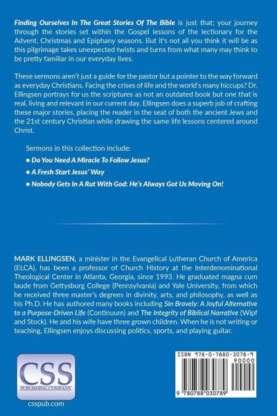 Finding Ourselves In The Great Stories Of The Bible is just that; your journey through the stories set in the ancient Bible times. But it's not all you think it will be as this journey takes unexpected twists and turns that may be pretty familiar in our everyday lives. Facing the crises of life and the world's many hiccups? Ellingsen portrays to us the scriptures as not an outdated book but one that is real, living and even relevant in our modern trends and times. He does a superb job of crafting these major stories, placing the reader in the seat of both the ancient Jews and the 21st century Christians while drawing the same life lessons centred around Christ. Sermons in this collection include:Do You Need A Miracle To Follow Jesus? A Fresh Start Jesus' Way Nobody Gets In A Rut With God: He's Always Got Us Moving On! Mark Ellingsen, a minister in the Evangelical Lutheran Church of America (ELCA), has been a professor of Church History at the Interdenominational Theological Center in Atlanta, Georgia, since 1993. He graduated magna cum laude from Gettysburg College (Pennsylvania) and Yale University, from which he received three master's degrees in divinity, arts, and philosophy, as well as his Ph.D. He has authored many books including Sin Bravely: A Joyful Alternative to a Purpose-Driven Life (Continuum) and The Integrity of Biblical Narrative (Wipf and Stock). He and his wife have three grown children. When he is not writing or teaching, Ellingsen enjoys discussing politics, sports, and playing guitar.